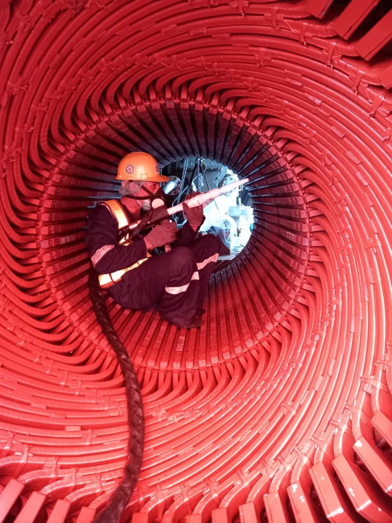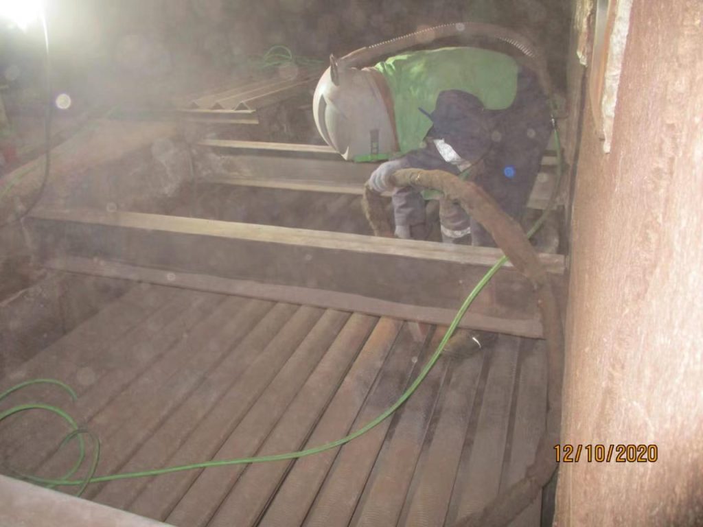 5. 船舶行業(yè):船身、入水閥、冷凝器清理,去油污、去油漆,比一般用高壓水射流清洗更干凈。